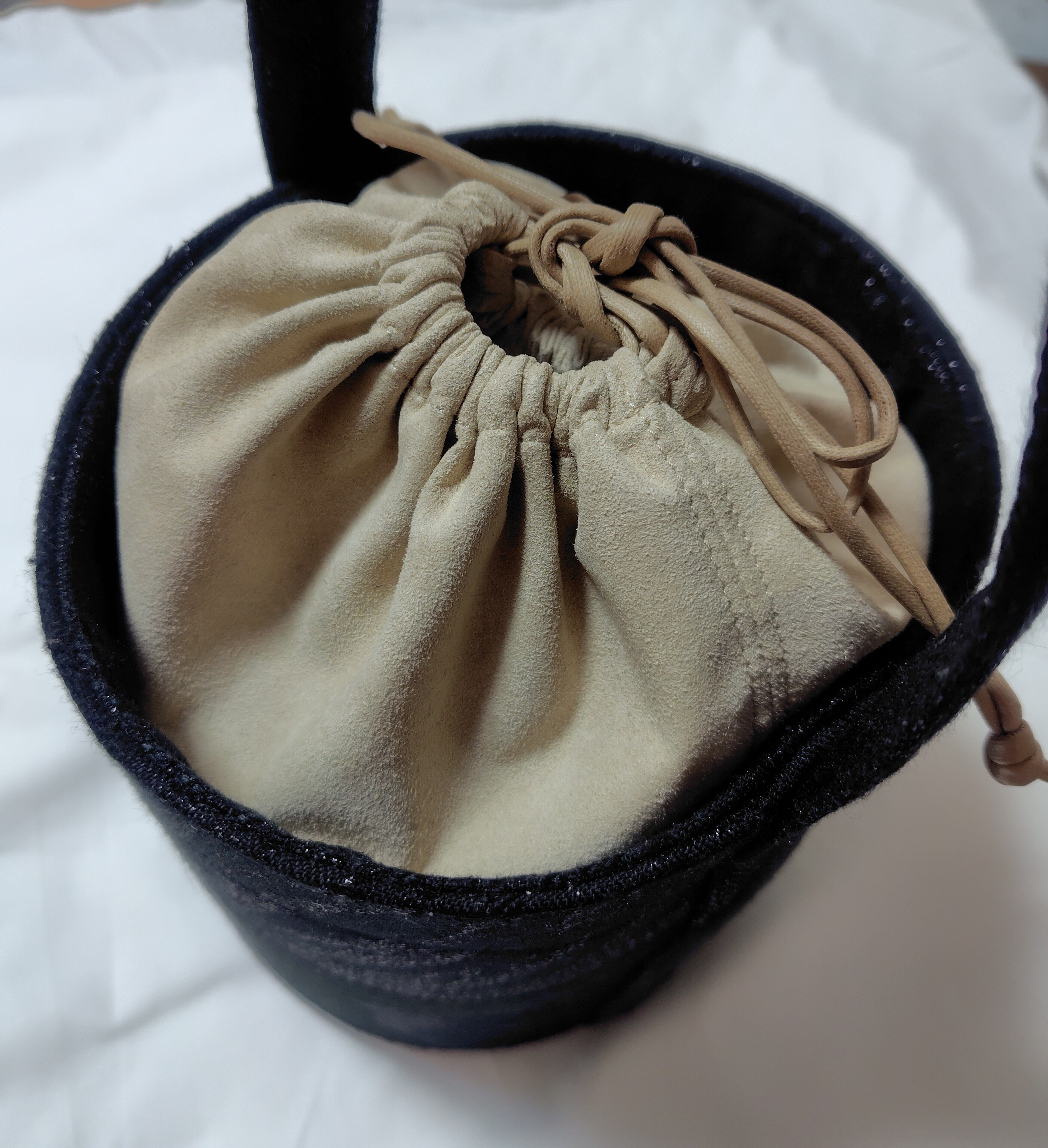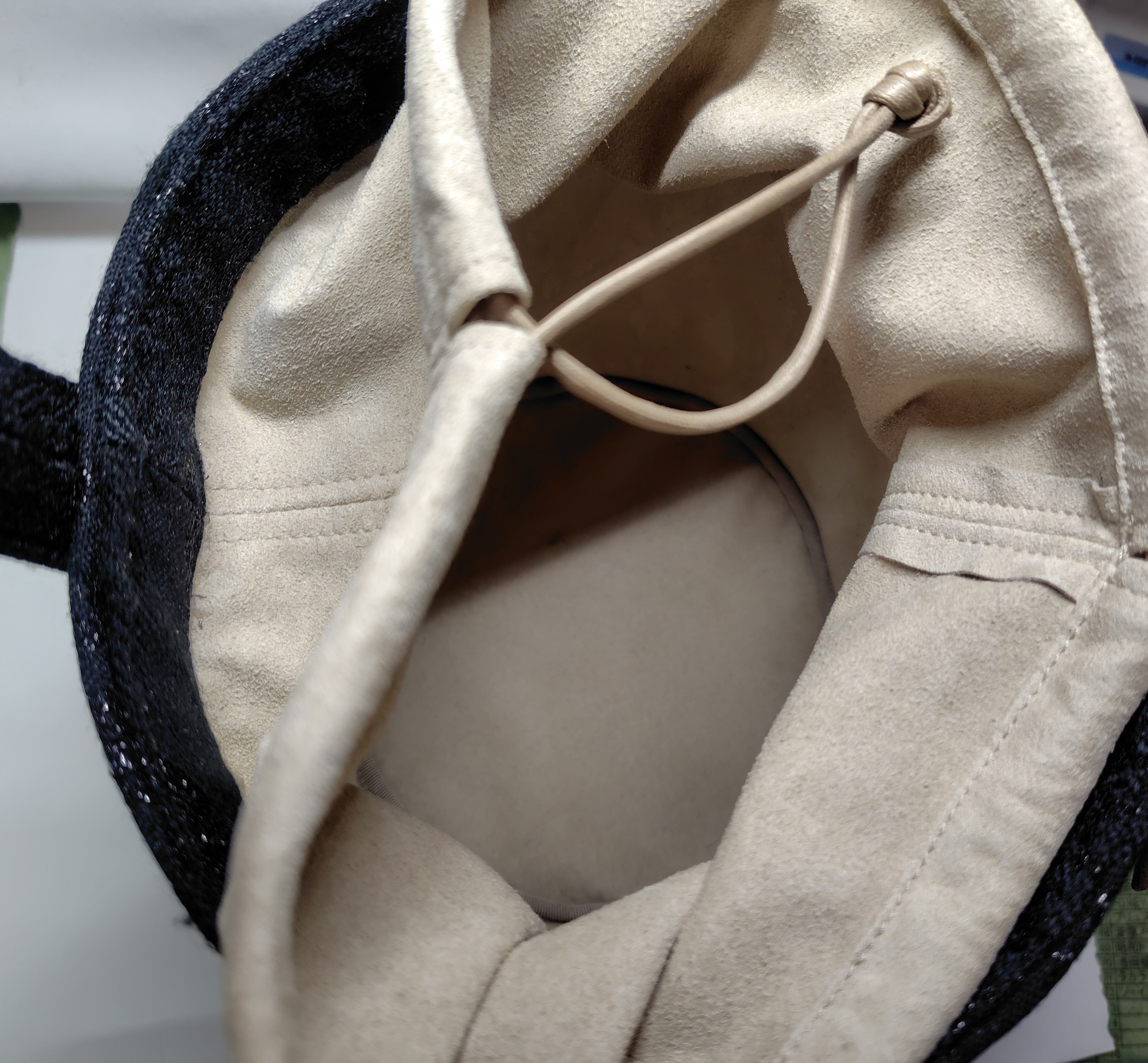 内側はベージュのスウェード調の布地を使用し、滑らかな手触りです。