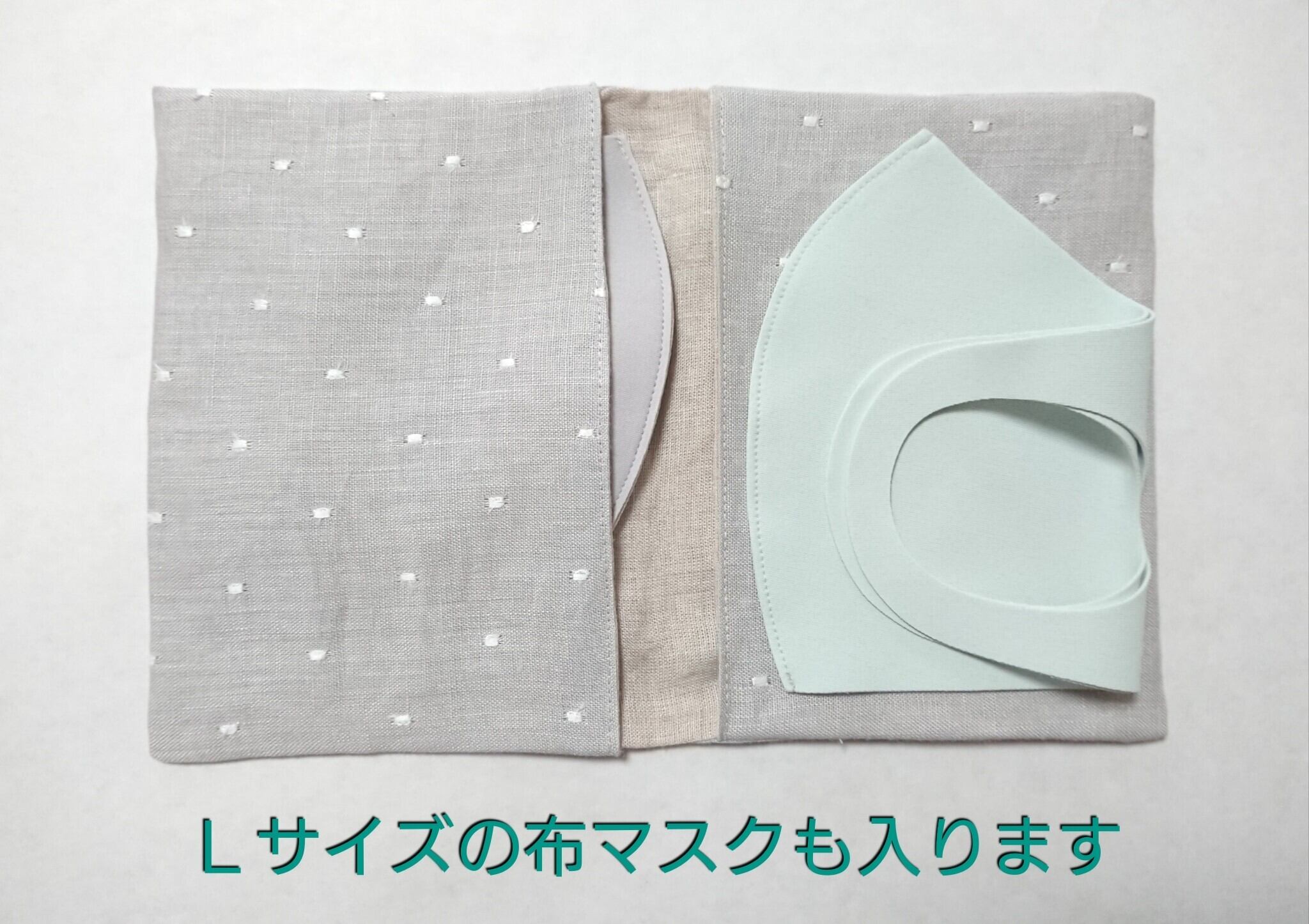 マスクケース ドット刺繍リネン 2ポケット二つ折り お薬手帳や通帳入れにも